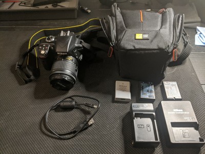 Nikon D3300 DSLR 24.2 MP Camera w/ 18-55mm Lens, 3 Batteries, 2 Chargers, Case
